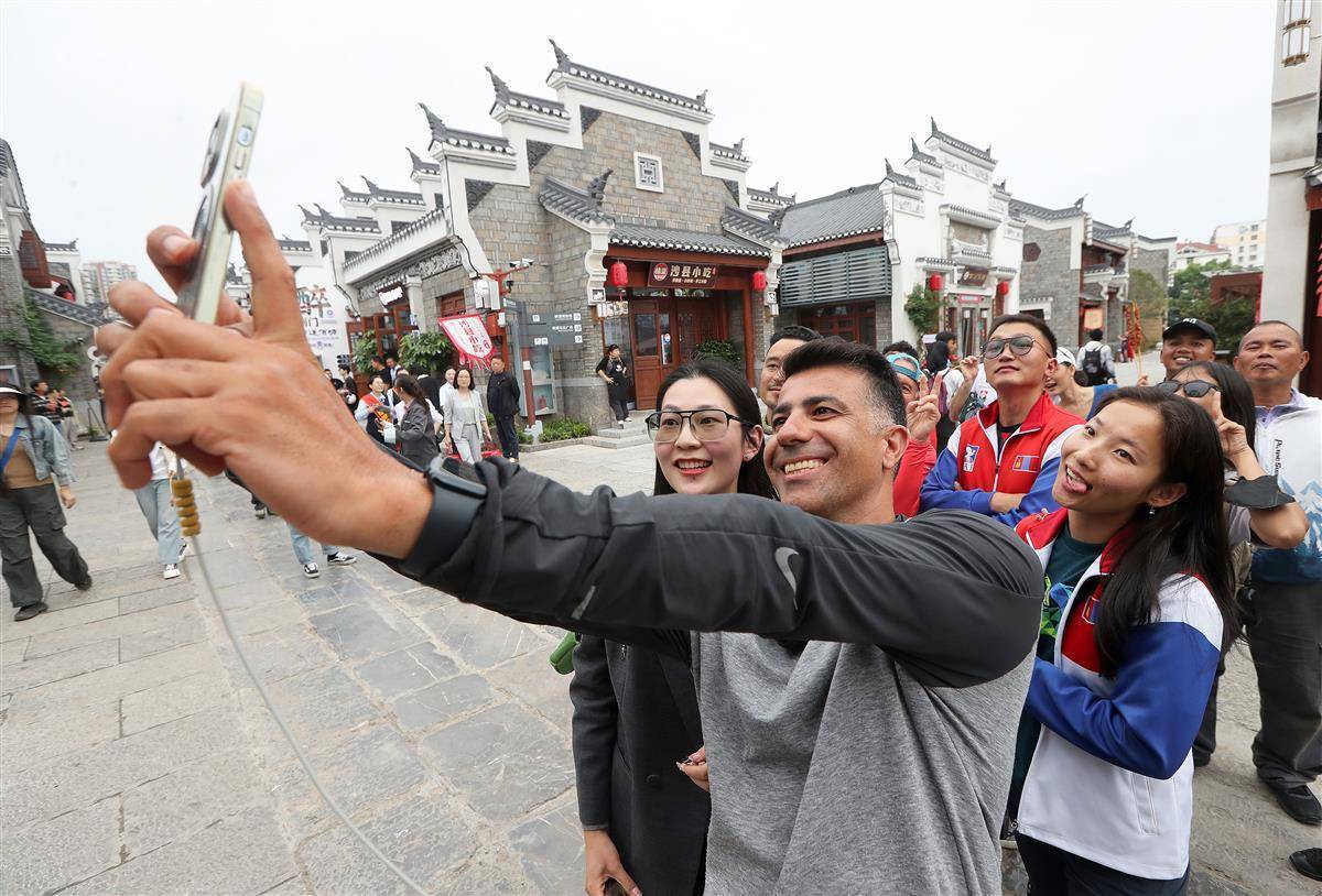 荆门市民主街迎来多批国内外游客。游客们穿梭于青砖黛瓦之间,感受楚风汉韵与市井烟火的独特交融。(通讯员赵平 摄)