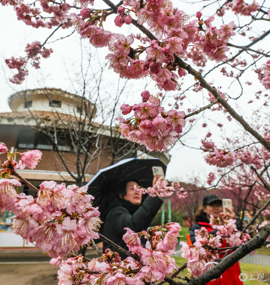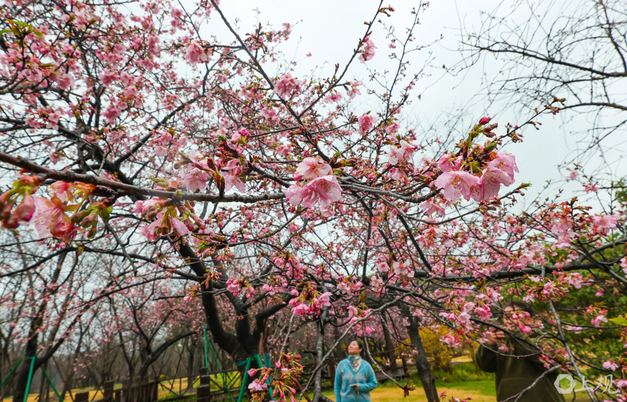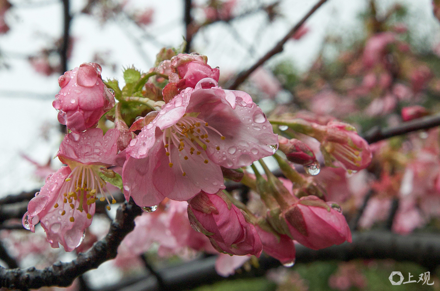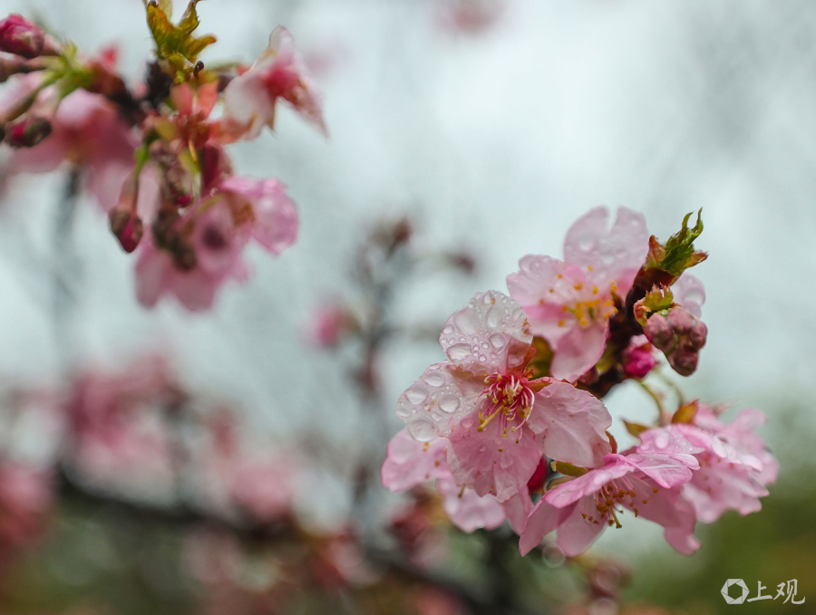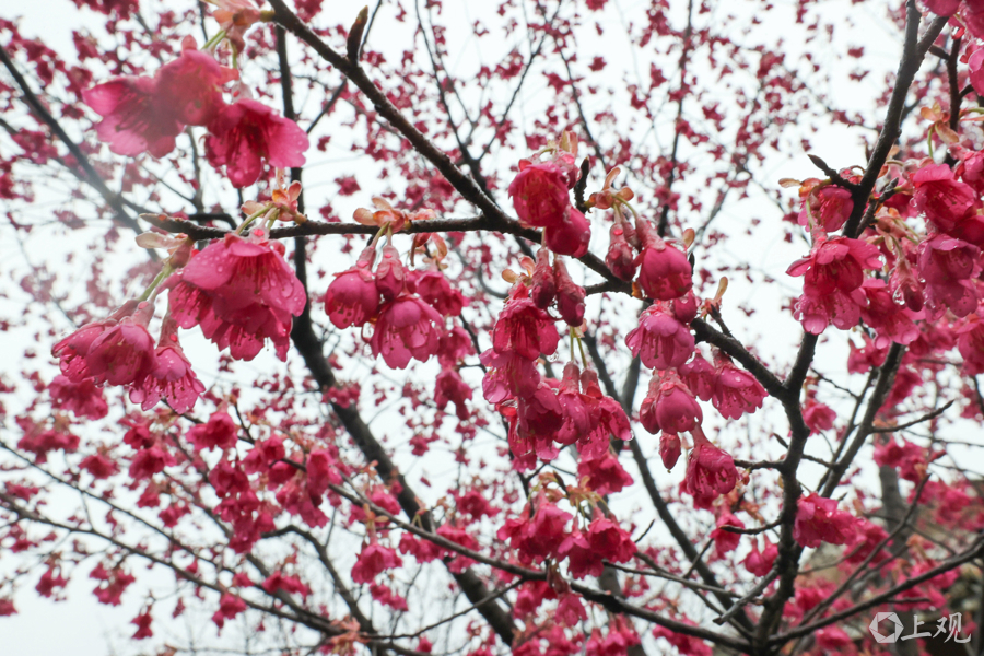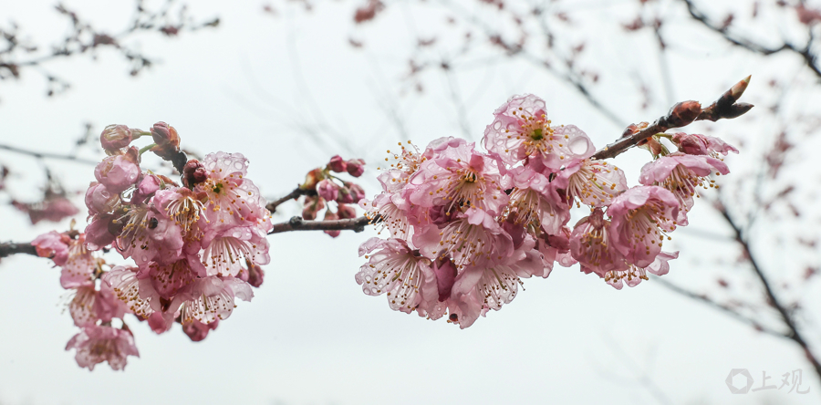 近期气温回升、光照充足,为早樱绽放创造了良好条件。